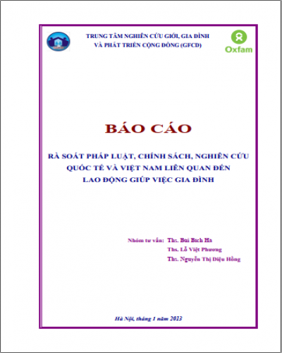 Báo cáo Rà soát pháp luật, chính sách, nghiên cứu quốc tế và Việt Nam liên quan đến lao động giúp việc gia đình của Trung tâm Nghiên cứu Giới, Gia đình và Phát triển cộng đồng – GFCD (năm 2013).