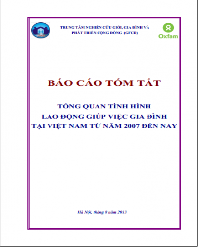 Báo cáo tóm tắt "Tổng quan tình hình lao động giúp việc gia đình tại Việt Nam từ năm 2007 đến nay" (tháng 8/2013) của Trung tâm Nghiên cứu Giới, Gia đình và Phát triển cộng đồng (GFCD)