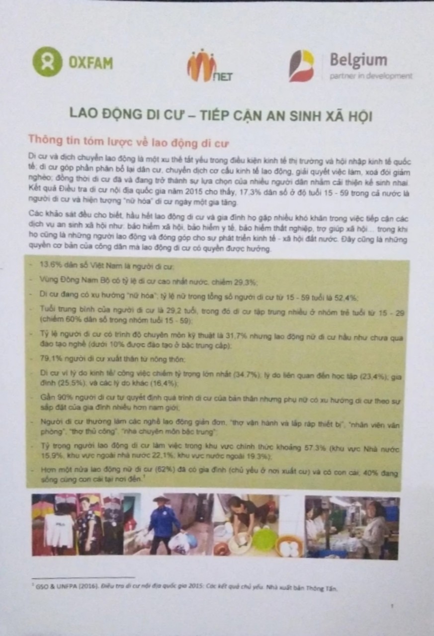 Tờ thông tin này bao gồm thông tin tóm lược về lao động di cư:
