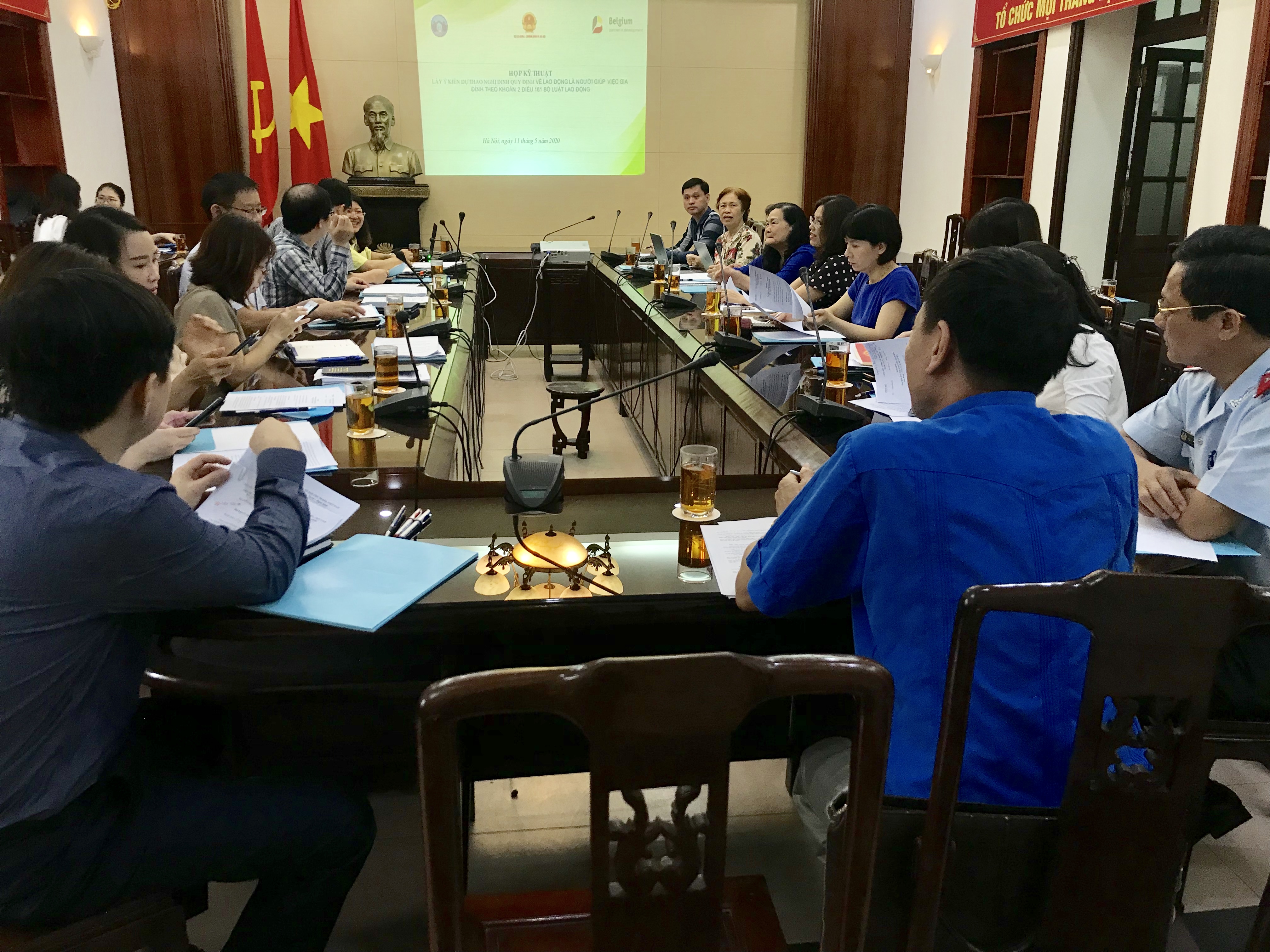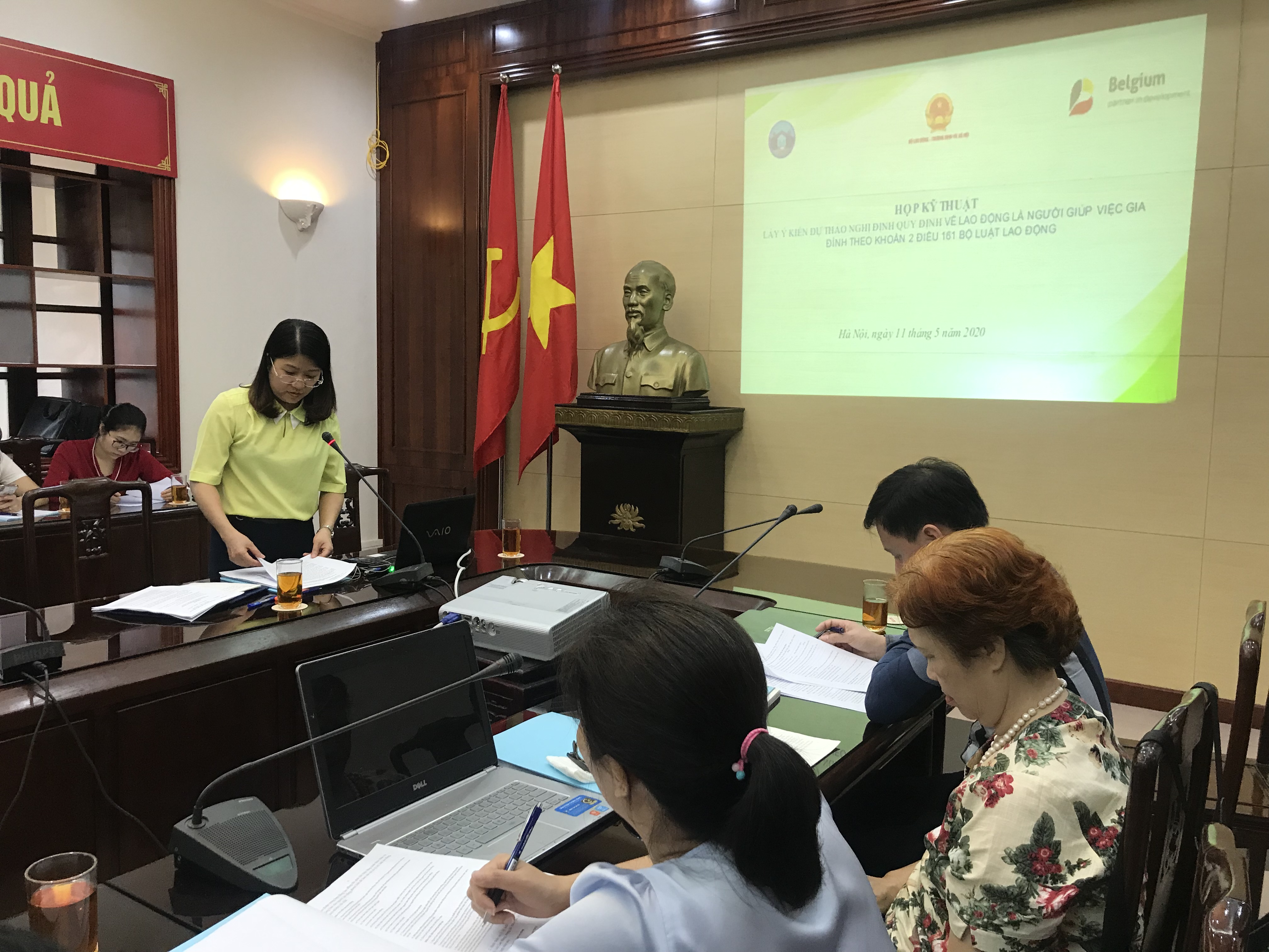 Trong khuôn khổ dự án “ Thúc đẩy quyền của Lao động giúp việc gia trong việc tiếp cận chính sách an sinh xã hội, lao động và việc làm tại Việt Nam”, hôm nay ngày 11 tháng 5 tại Hà Nội, GFCD phối hợp với Cục quan hệ lao động và tiền lương, Bộ Lao động – Thương binh và xã hội tổ chức Cuộc họp kỹ thuật lấy ý kiến chuyên gia về Dự thảo Nghị định quy định về lao động gia đình.